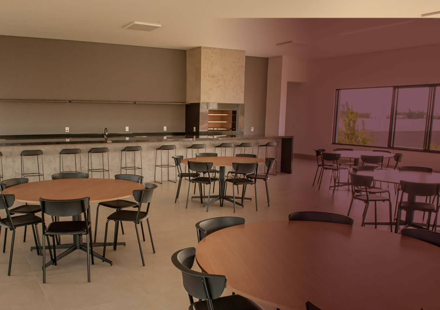 O condomínio Santa Rosa Residence conta com área de lazer com: Espaço gourmet com churrasqueira, campo de futebol, playground, praça e área verde.